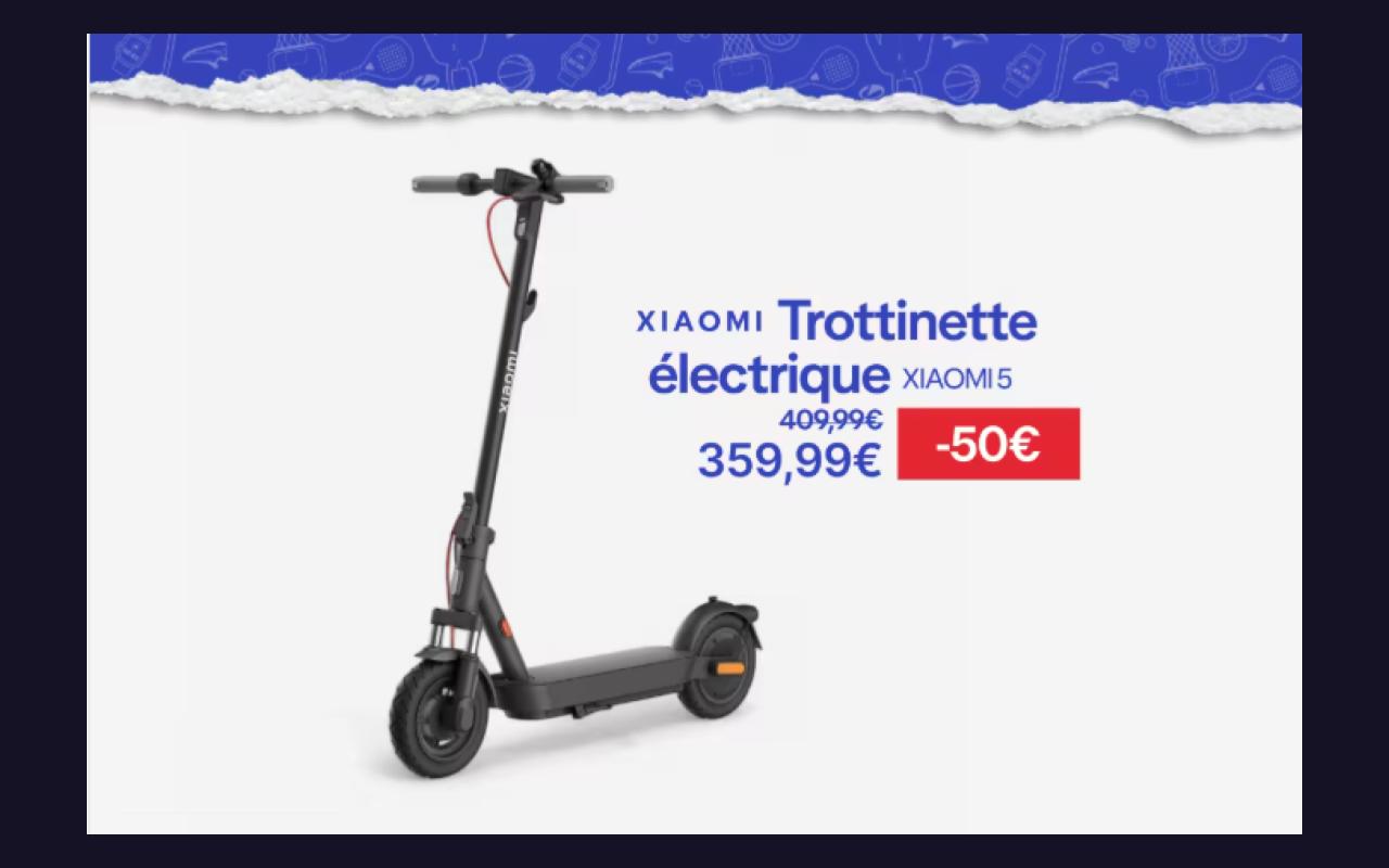 Trottinette électrique Xiaomi 5 à 359,99€ au lieu de 409,99€*